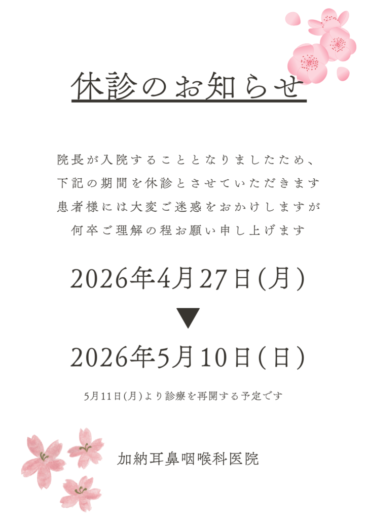 【重要】休診のお知らせ(2026.4.27~2026.5.10)
